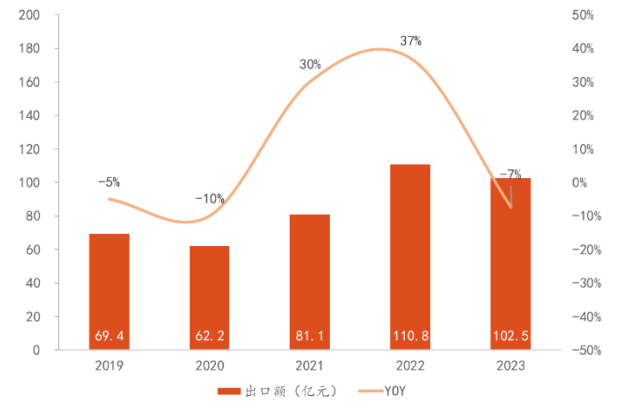 圖:2019-2023 年中國 LED 顯示屏出口額
