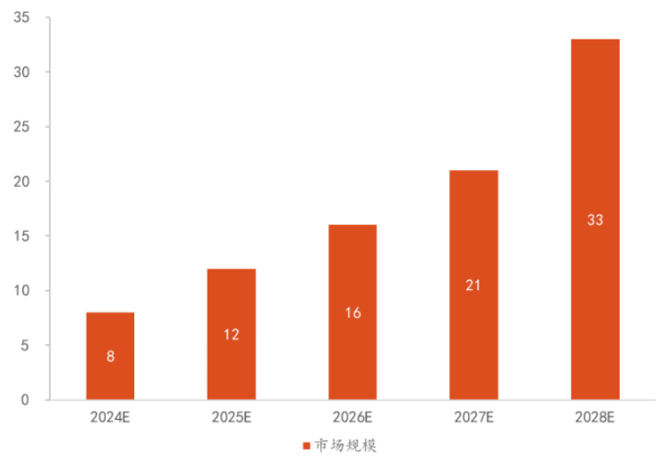 圖:2024-2028 年全球 Mini LED 直顯市場規(guī)模 預(yù)測(單位:億美元)