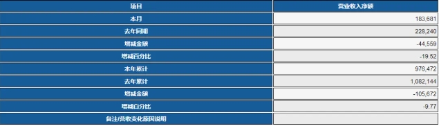 錸寶公布5月?tīng)I(yíng)收為1.84新臺(tái)幣(折合人民幣約0.41億元),同比減少19.52%。