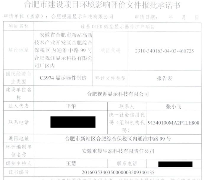 近日,合肥新站高新區(qū)生態(tài)環(huán)境分局發(fā)布“關(guān)于合肥視涯顯示科技有限公司硅基OLED微型顯示器件擴(kuò)產(chǎn)項(xiàng)目環(huán)境影響報(bào)告表審批意見(jiàn)的函(環(huán)建審〔2024〕12028號(hào))”