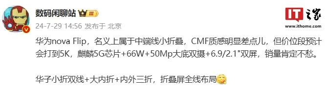 定價(jià)上,nova Flip的價(jià)格預(yù)計(jì)要比nova直板機(jī)高,但要比Pocket系列便宜很多。