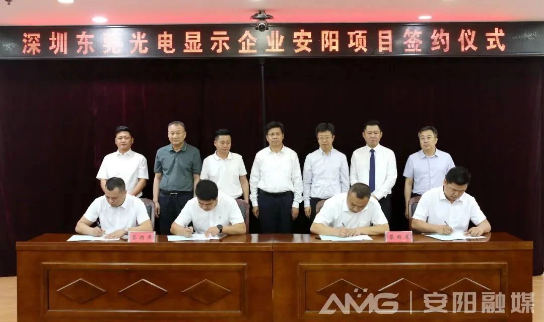 8月7日,深圳、東莞光電顯示企業安陽項目簽約儀式在市黨政綜合樓舉行。此次簽約項目總投資13.3億元,預計年產值10億元,將在安陽縣(示范區)建設光電顯示產業基地,助力安陽市打造具有全國影響力的光電顯示產業高地。