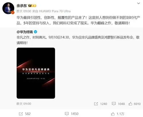 昨日華為官方宣布,華為品牌盛典及鴻蒙智行新品發(fā)布會將于9月10日舉行,屆時將發(fā)布全新的智能手機產(chǎn)品。