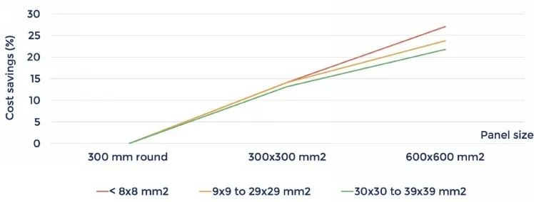 扇出面板級封裝(FOPLP)是基于重新布線層(RDL)工藝,將芯片重新分布在大面板上進行互連的先進封裝技術(shù),能夠?qū)⒍鄠€芯片、無源元件和互連集成在一個封裝內(nèi)。其是FOWLP(晶圓級封裝)的延續(xù),只是IC載板由8寸/12寸wafercarrier轉(zhuǎn)換為大尺寸面板,300mmx300mm的面板比同尺寸12英寸的晶圓可以多容納1.64倍的die,同時降低生產(chǎn)成本。