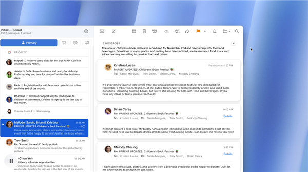 這次的另一個更新,就是屢次獲得庫克推薦的郵件總結(jié)功能。“優(yōu)先消息”出現(xiàn)在收件箱的頂部,顯示最為緊急的郵件,例如當(dāng)天中午的午餐邀請或登機牌信息。用戶可以直接點擊郵件查看摘要,并使用AI撰寫智能回復(fù)。