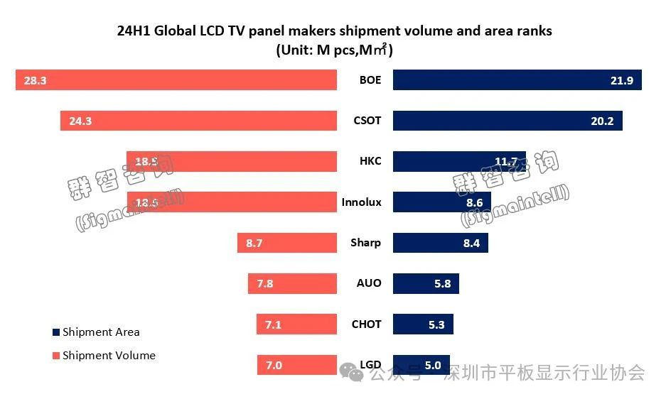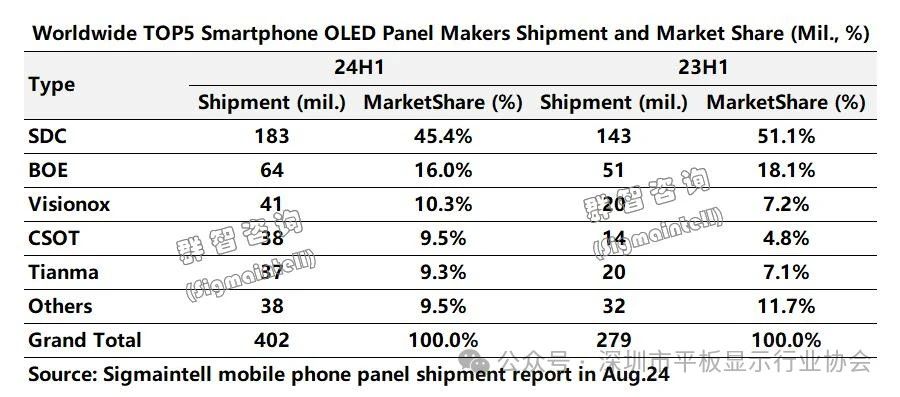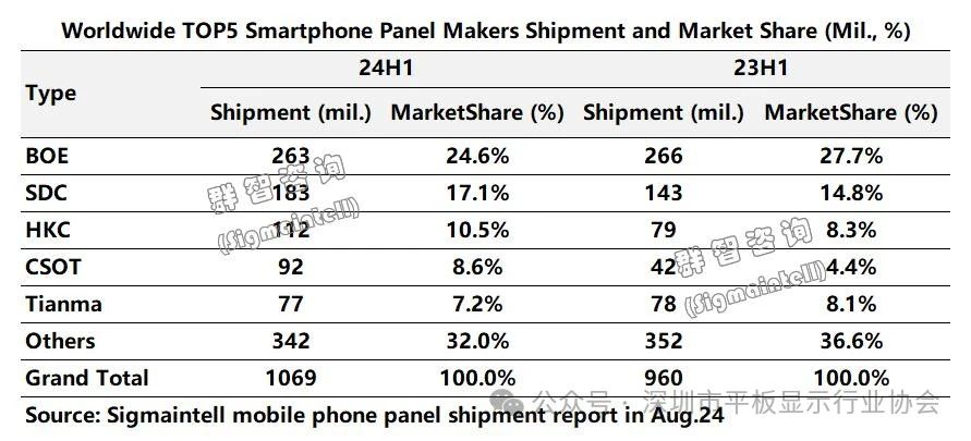京東方(BOE)、三星顯示(SDC)仍然引領市場、惠科(HKC)位居出貨第三。