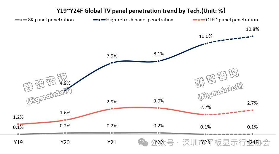 高分辨率,高刷新率,高畫質以及大尺寸依然為市場主流,也為更換潮帶來新的增長點。2024年面板企業(yè)致力于超頻技術上產品的更新,既2023年面板企業(yè)致力于75Hz → 100Hz的切換,而2024年開始面板企業(yè)計劃在此基礎上繼續(xù)將FHD 100Hz升級為120Hz,由于模具的互換性,價格的同步(FHD 75Hz Vs FHD 100Hz Vs FHD 120Hz)品牌企業(yè)也將會在2024年下半年開始大力的推廣超頻技術產品,這種超頻技術不僅在商用市場,消費類市場也會同步進行推廣。