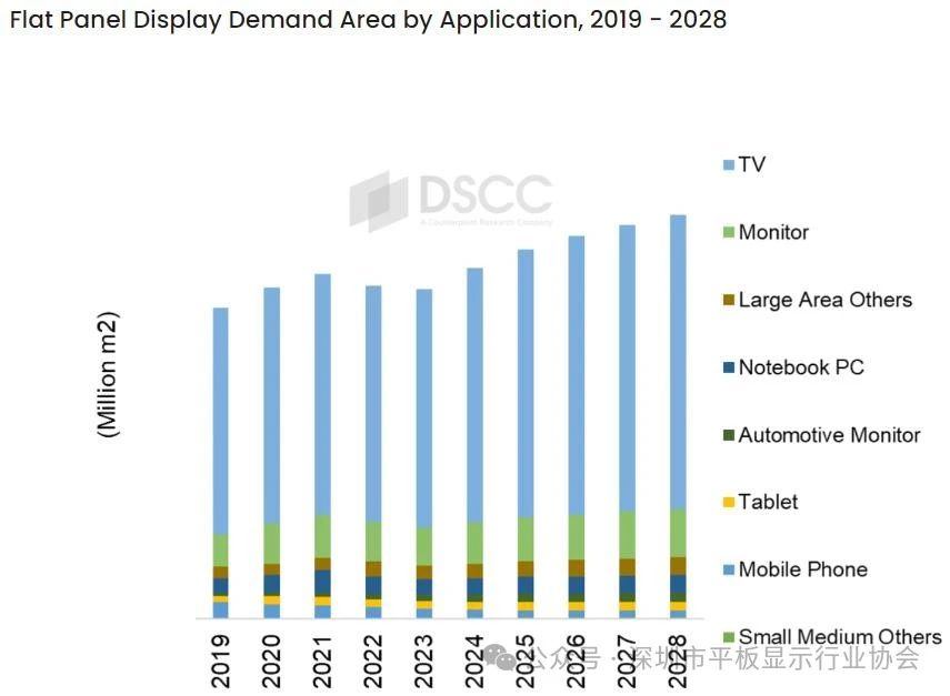 市場研究機構DSCC最新預測,以面積為基準的LCD面板市場需求將在5年內超過生產供給能力。電視屏幕的增長是最大推動力,在顯示面積需求中,電視面板的比重超過70%。