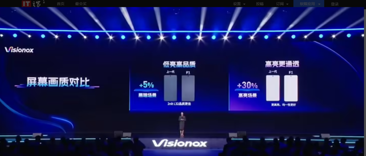 此外,維信諾 F1 的低亮度場景顯示品質(zhì)比上一代提升 5%、高亮場景提升 30%。