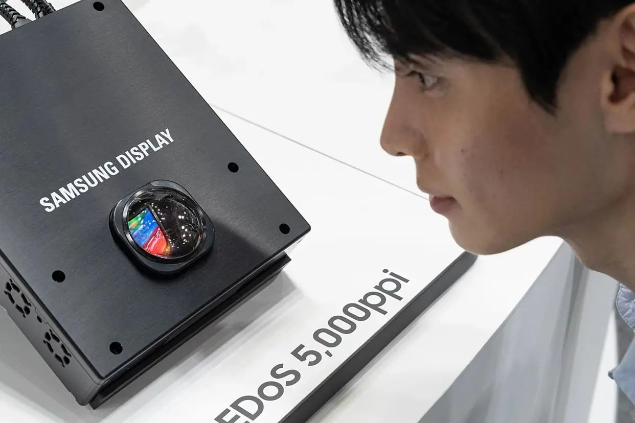 而在 OLEDoS (Micro OLED) 技術方面,三星帶來了 1.3 英寸 4000PPI 像素密度 1000nits 亮度 W-OLED 雙目顯示、1.4 英寸 5000PPI 像素密度 RGB OLED、采用 MLA 技術的 1.3 英寸 4200PPI 像素密度 20000nits 亮度 RGB OLED 等尖端微顯示器產品。
