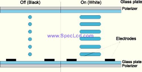 當(dāng)子像素通上電壓,兩個(gè)電極產(chǎn)生電場造成液晶旋轉(zhuǎn)到與靜止時(shí)垂直的位置。然后它們將會(huì)與偏向?yàn)V片并排而光線可以通過。