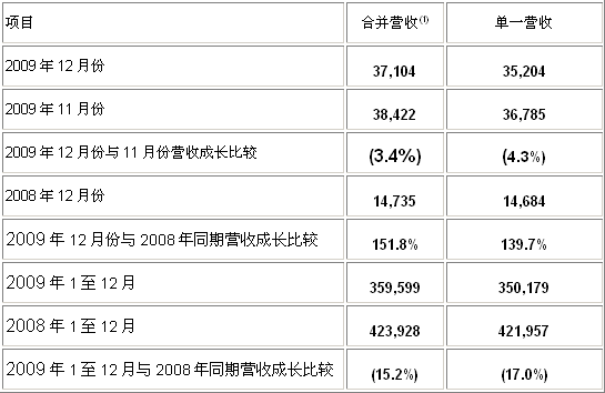 2009年第四季大尺寸出貨量超過2737萬片,較第三季增加2.5%,與2008年同期相比則大幅增加81.5%;中小尺寸第四季出貨量則約達6008萬片,較第三季減少7.3%,但較2008年同期增加26.8%。累計2009年全年大尺寸出貨量約達8964萬片,比2008年增加12.5%;2009年全年中小尺寸出貨量則超過2億2864萬片,與2008年相比則增加21.6%。