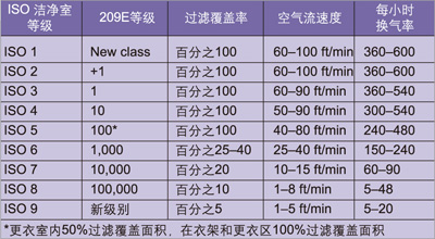 注意,對于ISO 7潔凈室,表中的兩個變量是空氣流速和每小時的換氣次數(shù)。需要考慮的^***因素是室內(nèi)空氣流模型的均勻性和潔凈室本身的構(gòu)造。因此,雖然ISO 7的高效微粒空氣過濾器覆蓋率推薦值是20%,但要提供令人滿意的ISO 7清潔度,過濾器覆蓋率是可以變化的。重要的是要記住提供的數(shù)值是推薦值,并非嚴(yán)格的規(guī)定。我們成功地建造過具有各種百分比過濾面積的ISO 7潔凈室。