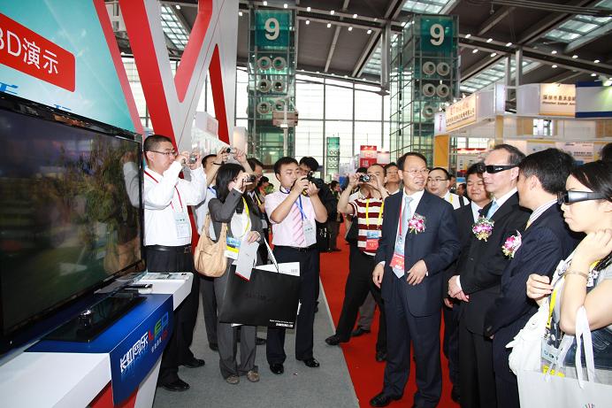 圖3 部省領(lǐng)導(dǎo)參觀2010年顯示周并體驗長虹集團(tuán)的3D技術(shù)