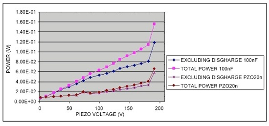 壓電體相對于直流馬達驅動器來說功耗極低,盡管如此,仍有一些其它功耗因素需要考慮: