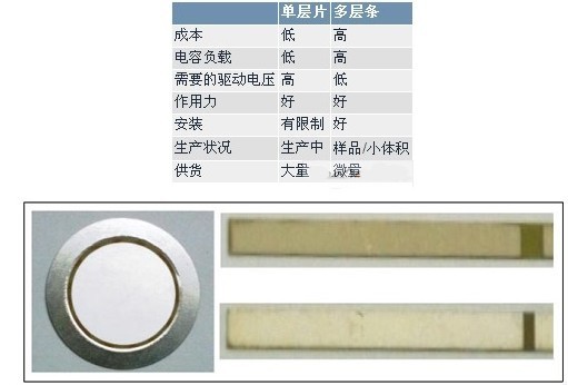 表1.單層和多層壓電驅動器的優勢對比