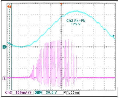 圖8.輸出電壓波形和 MAX11835 boost電源的電流波形