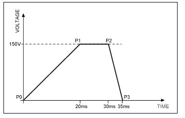 圖5展示了一個典型的觸感波形圖,波形模擬了對一個機械按鍵按壓和釋放的感覺。波形的上升沿,P0到P1,反映了按壓的觸覺響應;下降沿,P2到P3,反映了釋放的觸覺響應。從P1到P2的時間是用戶按住機械按鍵的持續時間,由用戶決定。
