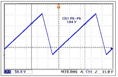 MAX11835觸覺驅動控制器對各種壓電驅動器和高壓電容的功耗進行了測量。MAX11835可以回放boost轉換器反饋環路中軟件控制的存儲波形,測試波形包括100Hz正弦波和20Hz斜坡。