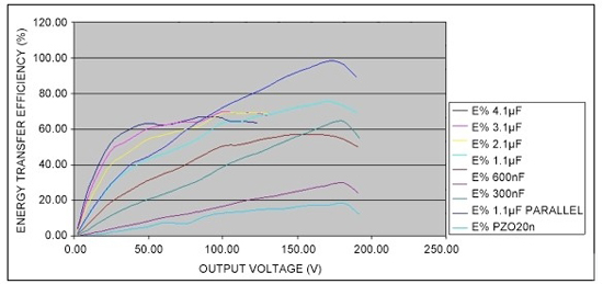 圖11所示波形連續工作。功耗隨著占空比的降低而線性下降。在機械負載(半阻塞作用力)和空載壓電驅動器的壓電體數據間沒有顯著的區別。