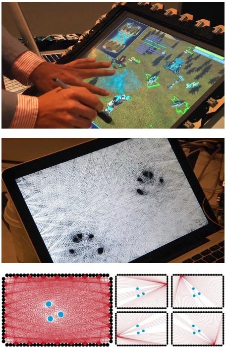 北京時間05月19日消息,中國觸摸屏網(wǎng)訊,美國德克薩斯州農(nóng)業(yè)科技大學的研究者最近研制了這款沒有觸摸屏的“觸摸屏”框架,該框架四周安裝有紅外感應器,密集的紅外線形成了無形的射線矩陣,當有人在框架內(nèi)移動手指或筆時,紅外矩陣會追蹤物體的軌跡并將這些動作輸入電腦,從而實現(xiàn)“真空無屏”操作。這款框架還可貼于普通觸屏電腦上,進而實現(xiàn)多點觸控。研究人員正在努力探究提高其識別分辨率的方法,希望可以盡快將其投入生產(chǎn)。