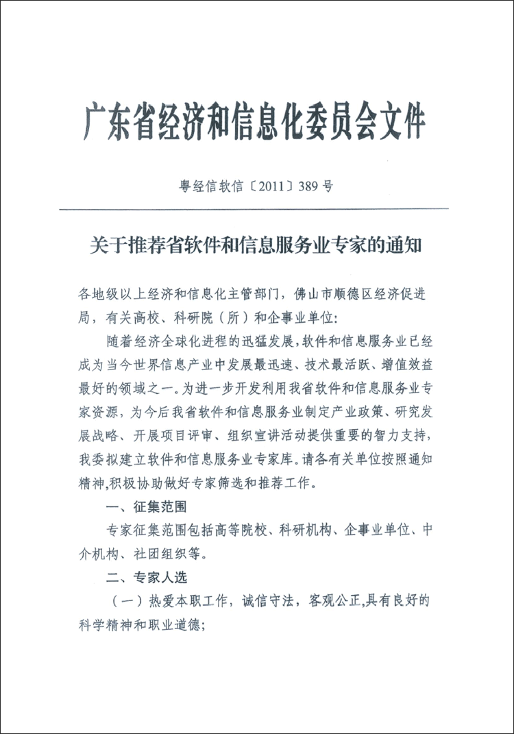 附件:廣東省經信委《關于推薦省軟件和信息服務業專家的通知》