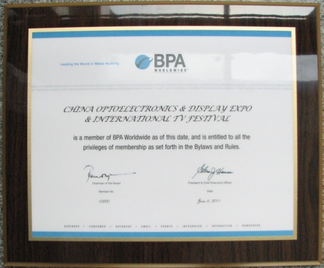深圳光電顯示周暨中國國際彩電節(jié)認(rèn)證報告可從BPA Worldwide網(wǎng)站上獲取。