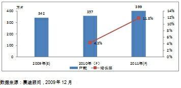 圖1 2009-2011年中國LCD面板產能規模及增長率(以玻璃基板為單位計算)