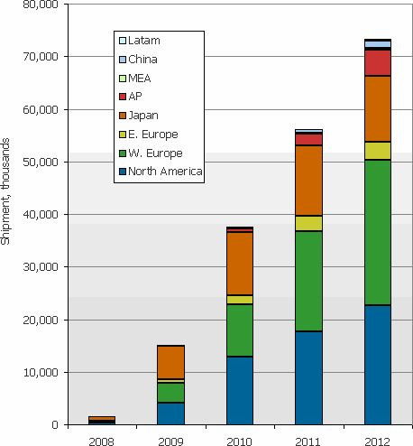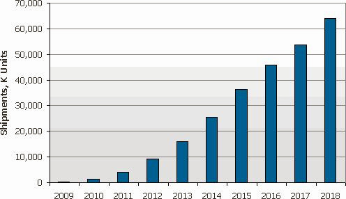 DisplaySearch指出,2010年起,LED背光液晶顯示器和240Hz倍頻驅(qū)動將作為實現(xiàn)技術(shù)發(fā)展的新特點,另外3D也將引起平面電視制造商的強烈興趣。DisplaySearch預(yù)測,3D TV將由2009年的20萬臺成長到2018年的640萬臺。