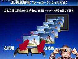采用3D影像顯示與有源方式液晶快門眼鏡相結合的“分時方式” |