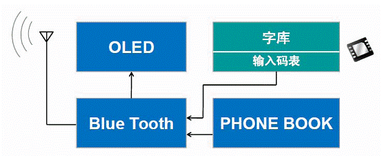 為此,上海高通半導體公司針對藍牙撥號器專門開發了包括漢字輸入法和和漢字庫的單芯片產品(圖6)。內置拼音和筆劃漢字輸入法碼本以及Unicode(20902漢字)漢字庫,并提供11x12點標準字形漢字,以及解決128x64點陣OLED屏顯示字數少的不足,使顯示字數從16點字庫的8字x4行,增加到12點字庫的10字x5行。藍牙撥號器專用字庫芯片型號為GT22L12U1Y和GT22L16S2Y,采用DFN的8腳封裝,SPI串行總線,尺寸為3mmx3mmx0.75mm。