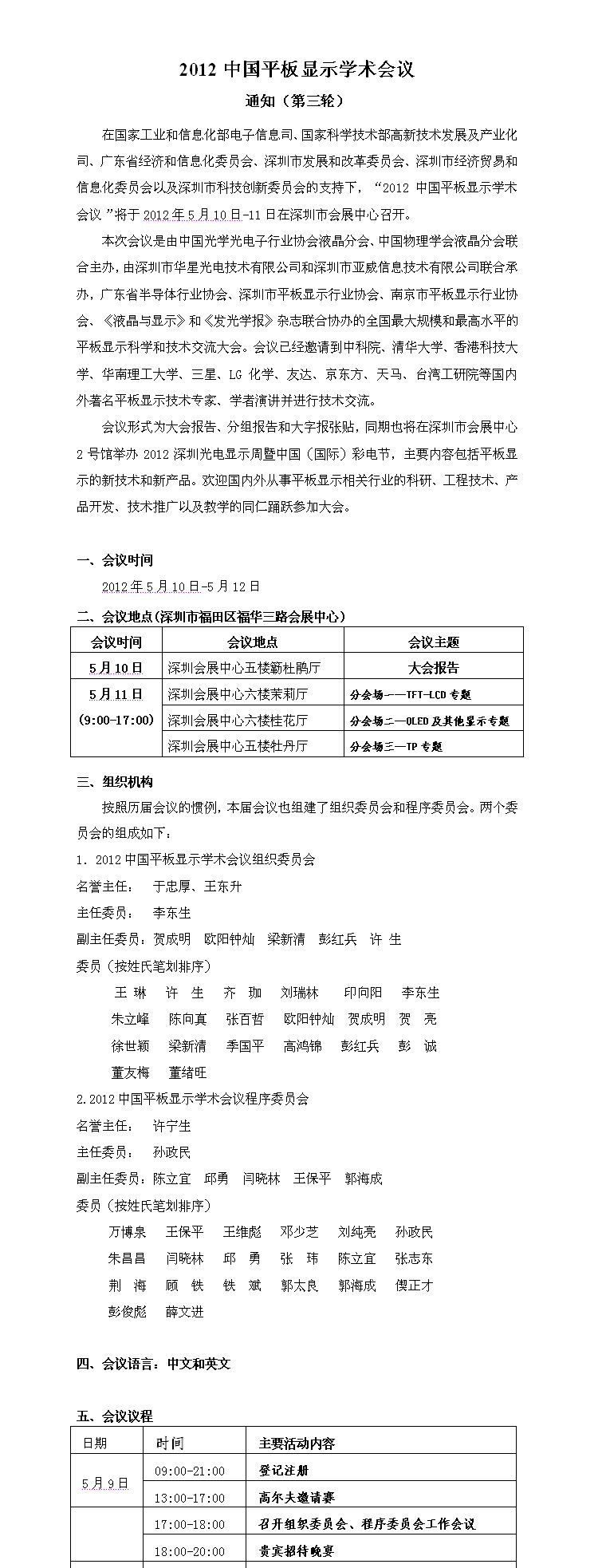 2012中國平板顯示學術會議通知(第三輪)