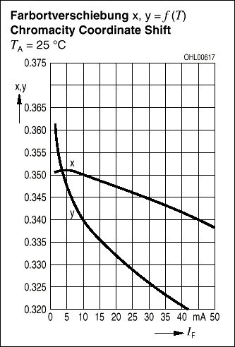 Fig.2 The white LED chromacity coordinate vs. forward current
