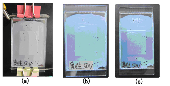 (a) electric field applied, (b) electric field unapplied, (c) 60 days after