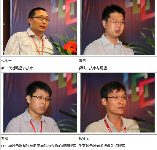 在“OLED及其它他顯示技術”分會場報告上,上海天馬、京東方、華星光電、南京五十五所、TCL集團工藝研究院等單位探討了大尺寸OLED關鍵工藝、B/P技術-OXIDE TFT技術、專利態勢、三維顯示器、新一代近眼顯示技術。
