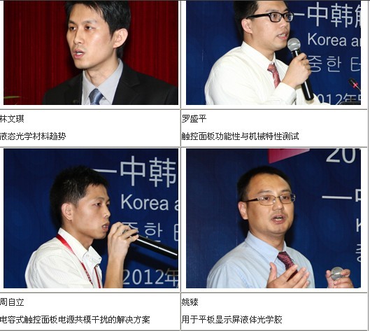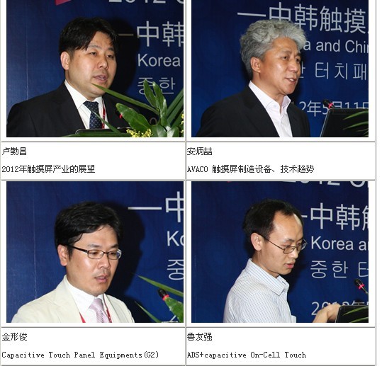 在“中韓觸摸屏產業論壇”分會場報告上,韓國HMC、AVACO、MaxFilm、WONIK IPS、京東方、友達、中顯微等行業代表分享了觸摸屏裝備、材料、解決方案,以及2012年觸摸屏產業展望等,并現場進行了互動。