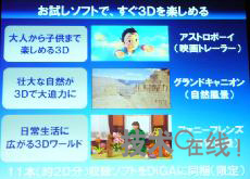此次,已實現(xiàn)產(chǎn)品化的3D電視將附帶一個有源方式液晶快門眼鏡(圖3)。該公司稱,追加購買眼鏡時,預計市場價格在1萬日元左右。內(nèi)容方面,除了電影公司等企業(yè)預定上市的BD內(nèi)容之外,還預定在促銷活動時隨BD影碟機和BD錄像機“附贈試用軟件”(松下的西口)(圖4)。