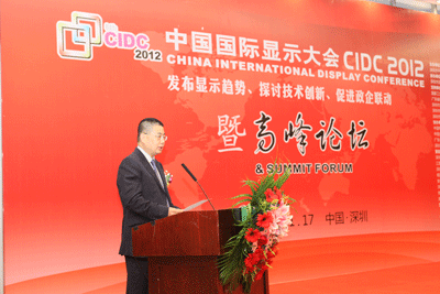 11月17日上午九點,作為第十四屆高交會光電平板顯示展的重要主題活動的第八屆中國國際顯示大會(CIDC2012)在深圳會展中心桂花廳隆重開幕。參加此次大會的有來自國家工業和信息化部電子信息司丁文武司長,深圳市人民政府盛斌副秘書長,國家工業和信息化部電子信息司彭紅兵副司長,廣東省經濟和信息化委員會彭平副主任,國家工業和信息化部電子信息司喬躍山處長,深圳市平板顯示行業協會于忠厚會長、董緒旺名譽會長、許生常務副會長、孫政民秘書長等主管部門和協會領導;以及來自企業界的京東方張宇高級副總裁、劉鋒副總裁,康佳集團劉鳳垚副總裁,華星光電王國和高級副總裁,天馬集團孫永茂副總裁,長城計算機周庚申總裁,深紡集團王濱董事長,TCL副總裁、研究院院長閆曉林,DisplaySearch謝勤益副總裁等。